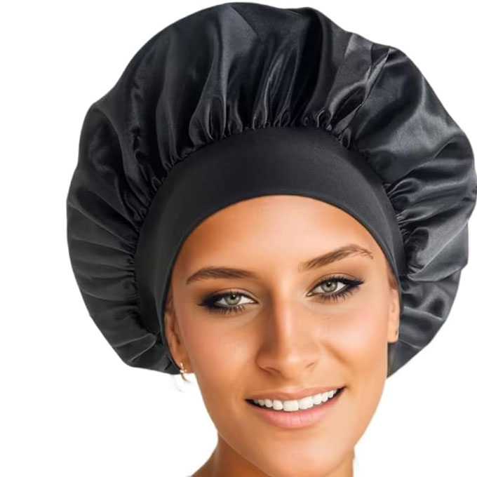 - Prévention des frisottis et de l’assèchement : En limitant les frottements et en conservant l’hydratation, le bonnet en satin contribue à des cheveux plus doux, plus lisses et plus brillants au réveil.